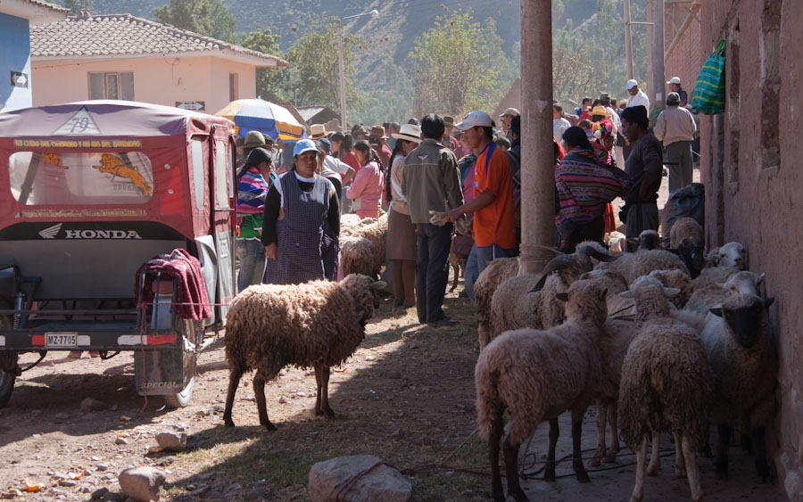 There is a weekly regional farmers market in the town of Urubamba, which is about a 20 minute drive by “combi”. The combi’s are essentially mini-vans that operate as taxi’s/busses. The seat 12, but the one I was on started out with 16 people, then the driver decided to pick up a few more riders along the way (hence the role of bus) pushing the total to 20. When we came to a slight incline of no more than 2% the vehicle could hardly make it up the hill. I was the only gringo.