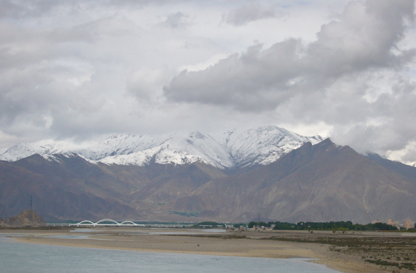 Today I was cycling over a bridge and stopped in a pedestrian pull-out area to take this innocuous photo of the snow-capped mountains down river. An army guard appeared out of nowhere and started yelling at me (in Chinese) and pointing to my camera. Apparently there is a restriction on taking photos of mountains from bridges, I guess. Anyway, it’s all very creepy.