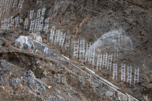 These stairways to a higher plane are painted on the sides of rocks all along the roads.