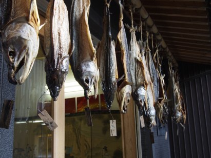 Gotta love the food, though fruit does not appear in a traditional Japanese breakfast. In a ryokan, like this morning, you don’t get a selection (no buffet like western hotels) so you eat what’s in front of you. One item this morning was a bowl with squid, octopus, and fish roe in it… I hate it. And with all the salmon hanging all over town yes there was salmon on my plate, and it was fantastic.